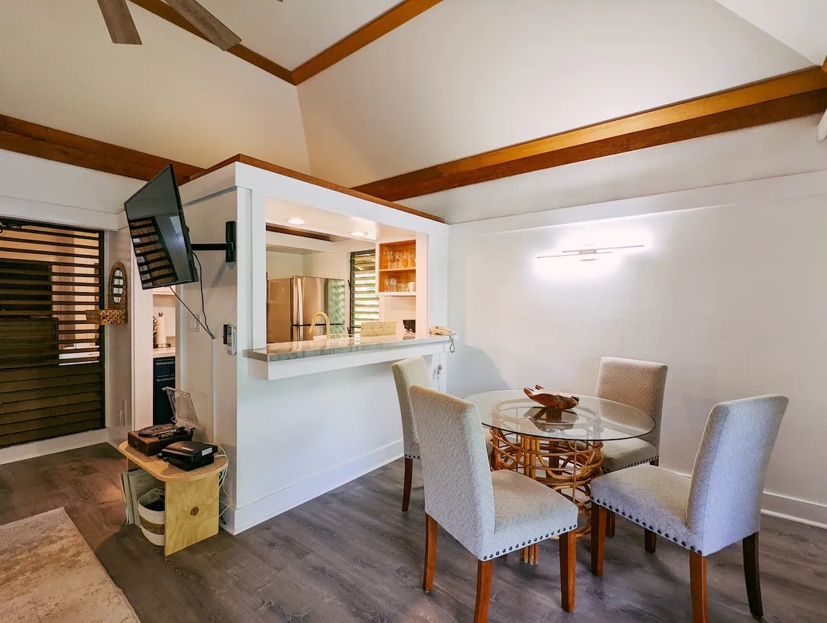 Welkom bij Suite Hale Kauai! Onze schuilplaats met één slaapkamer is de perfecte plek voor koppels en huwelijksreizigers die de magie van Kauai willen ervaren met een kant van comfort en plezier. Suite Hale Kauai heeft alles wat je nodig hebt om je direct thuis te voelen. We hebben serieuze magie ingezet om ervoor te zorgen dat je verblijf net zo onvergetelijk is als dat eerste slokje tropisch drankje. Maak je klaar om achterover te leunen, te ontspannen en laat ons je helpen herinneringen te maken op dit prachtige eiland waar je al jaren over opschept!