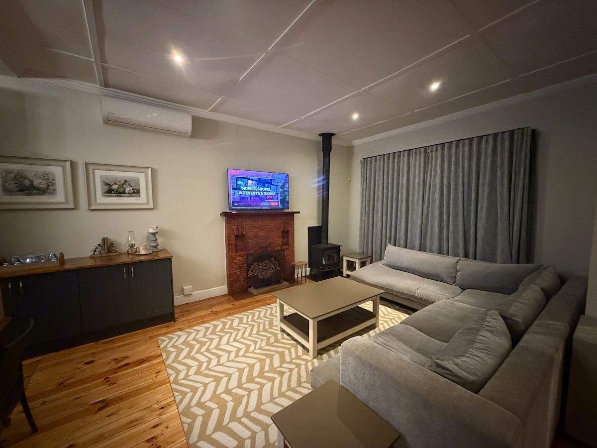 Welkom in ons rustige huis in Stones Hill, op slechts 5 km van de stad. Geniet van een duurzaam verblijf met zonne-energie en je eigen watervoorziening, plus een ruime braai-ruimte, grote tuin en zwembad. Binnen is een complete keuken, gezellige open haard lounge, wasserette, wifi, Netflix, 3 slaapkamers en 2 badkamers. Let op: we hebben drie inwonende katten, dus de woning is mogelijk niet geschikt voor gasten met allergieën.