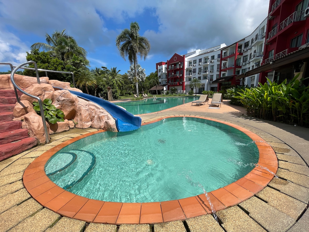 Hoofdslaapkamer met een aparte woonkamer en een balkon met een rustgevend uitzicht op de bergen. Gelegen in een 4-sterrenhotel aan Gaya Street, de centrale plek van Kota Kinabalu, op 3 minuten loopafstand van Suria Sabah, Jesselton Quay, avondmarkten en zondagsmarkt, tal van must-visit top lokale restaurants zoals Shoney's, Merah Merah Korea, en On 22, ook uitgerust met 4-sterrenhotelfaciliteiten zoals een fitnessruimte en een zwembad met uitzicht op zee, dit zal een perfecte plek voor jou zijn.