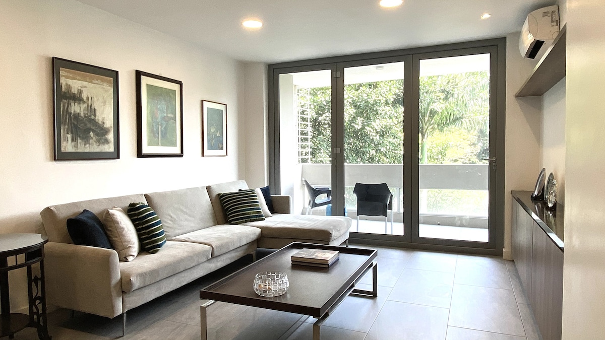 Volledig gerenoveerd, minimalistische inrichting, hardhouten teak vloeren, prachtig uitzicht op de stad en de rivier, volledig uitgeruste keuken, airconditioning, pitch blackout gordijnen in de kamer wanneer nodig, regendouche, warm water, wasmachine, droger, wifi, flatscreen-tv, netflix, gezuiverd gefilterd water om te drinken, 24-uurs beveiliging van het gebouw, beste locatie in de stad, op loopafstand van de bezienswaardigheden van de stad. Drie blokken rond vele restaurants, bars, winkels, supermarkten, parken en pleinen.