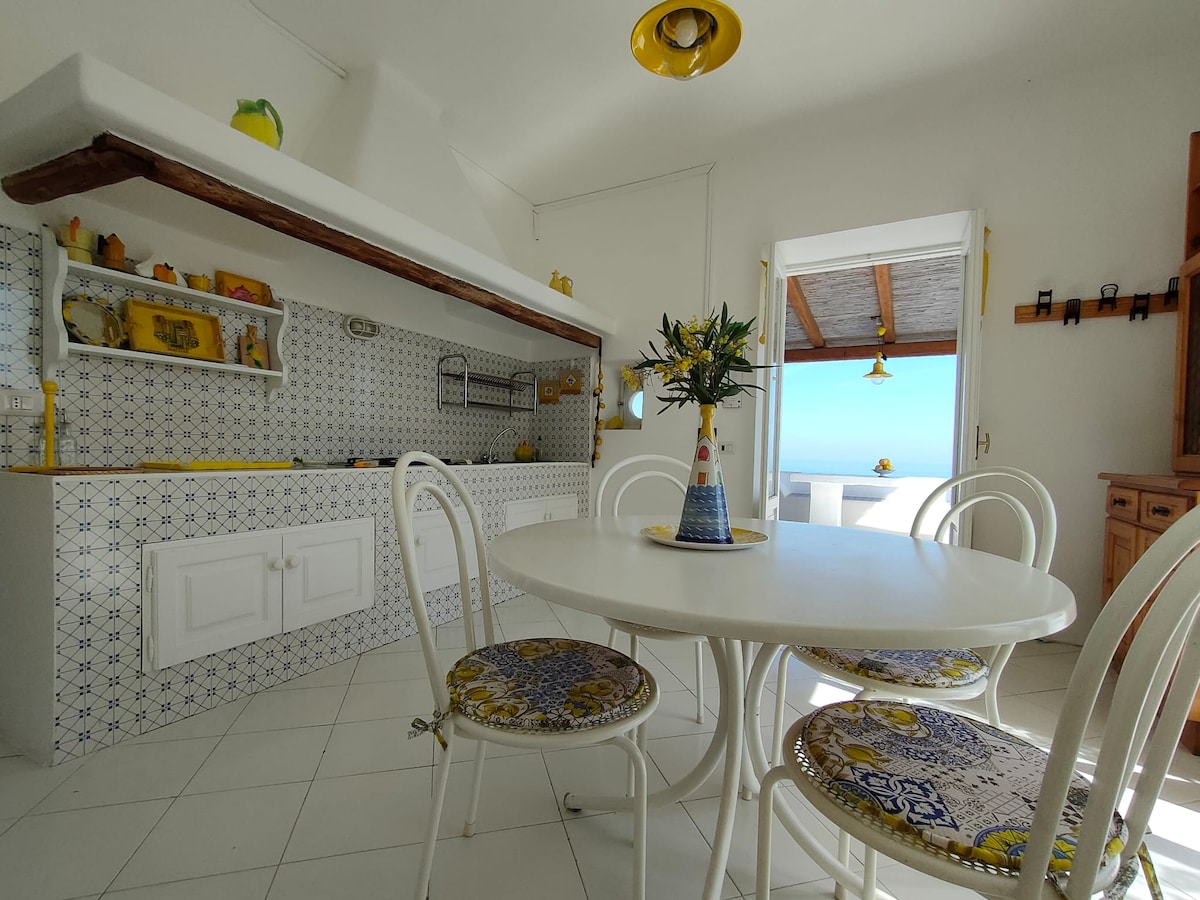 Het huis ligt ongeveer 200 meter boven zeeniveau, in een positie van waaruit u kunt genieten van een prachtig 180° uitzicht. Het huis heeft drie terrassen met uitzicht op de zee. Het huis ligt op twee niveaus. Op de eerste verdieping is er een slaapkamer met badkamer met douche Op de tweede verdieping, die toegankelijk is vanaf een externe trap, is er de keuken met uitzicht op twee terrassen en een andere kamer met een tweepersoonsslaapbank en een eenpersoonsbed, een tweede badkamer met douche, een kleedkamer.