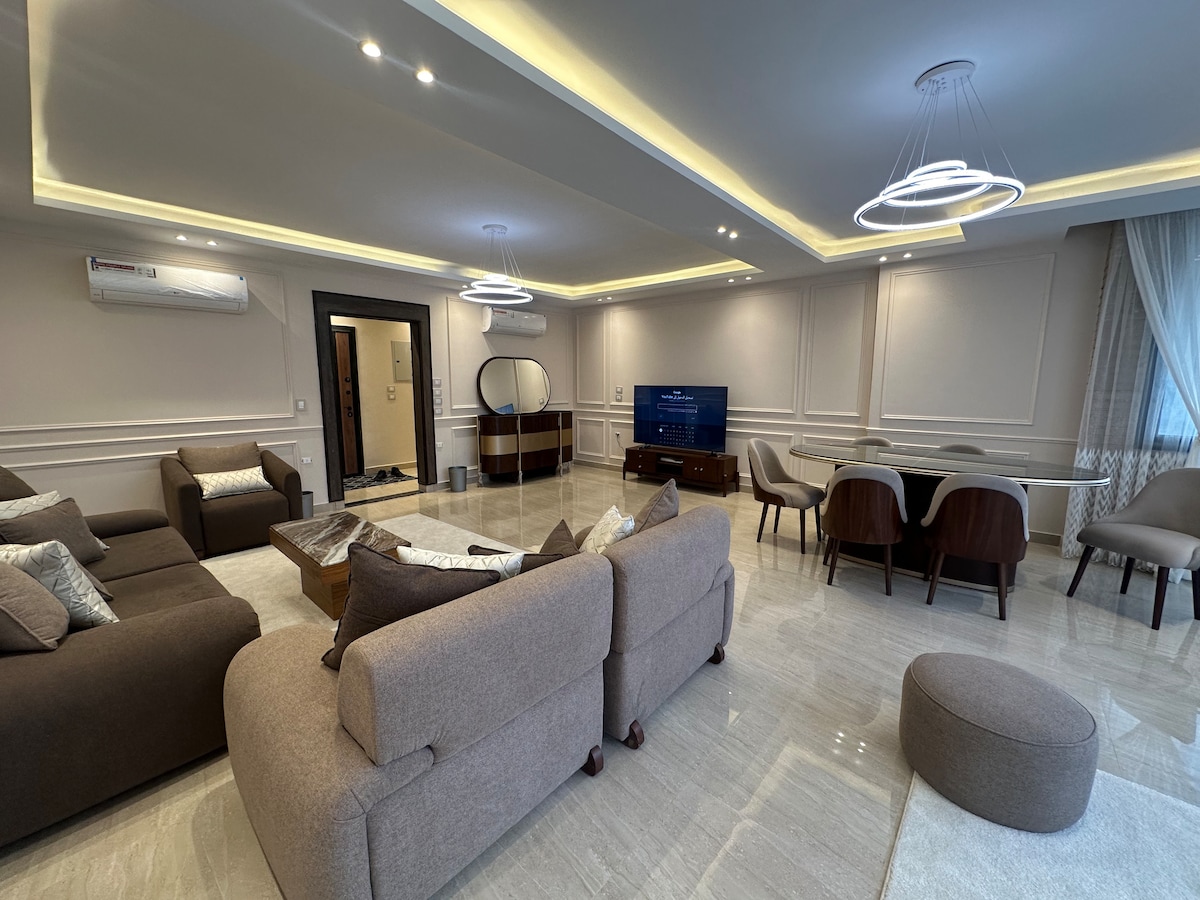 Geniet van een rustig, luxe en comfortabel verblijf in een luxe aparthotel in Zayed Heights Compound, Sheikh Zayed - een ideale locatie in de buurt van Arkan Mall, Mall of Arabia en de toeristische wandelweg van Busola Dahshour. Het appartement is 250m², het heeft 3 moderne slaapkamers, allemaal met verduisteringsgordijnen (een van hen is een hoofdslaapkamer) Ruime ontvangsthal en woonkamer met 4 banksets Een reis voor 8 personen Volledig uitgeruste keuken open naar de woonkamer 2 tv's 65 en 55 inch Netflix Wifi Warme/koude airconditioning Automatische wasmachine Wasmachine bij de afwasmachine Oven De mogelijkheid om de slaapkamers, woonkamer en keuken te scheiden van de hoofdreceptie voor volledige privacy