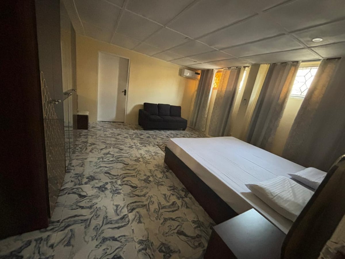 Ontsnap naar onze Duazon Villa, een modern en stijlvol toevluchtsoord gelegen langs Robertsfield Highway in het hart van Duazon - op slechts 20 km (12 mijl) van Monrovia en op slechts 25–30 minuten rijden van Roberts International Airport. Of je nu op zakenreis bent, van een ontspannen uitje geniet of een uitgebreid familieverblijf organiseert, onze villa is zorgvuldig ontworpen om uitzonderlijk comfort, privacy en gemak te bieden in een rustige en goed verbonden omgeving.