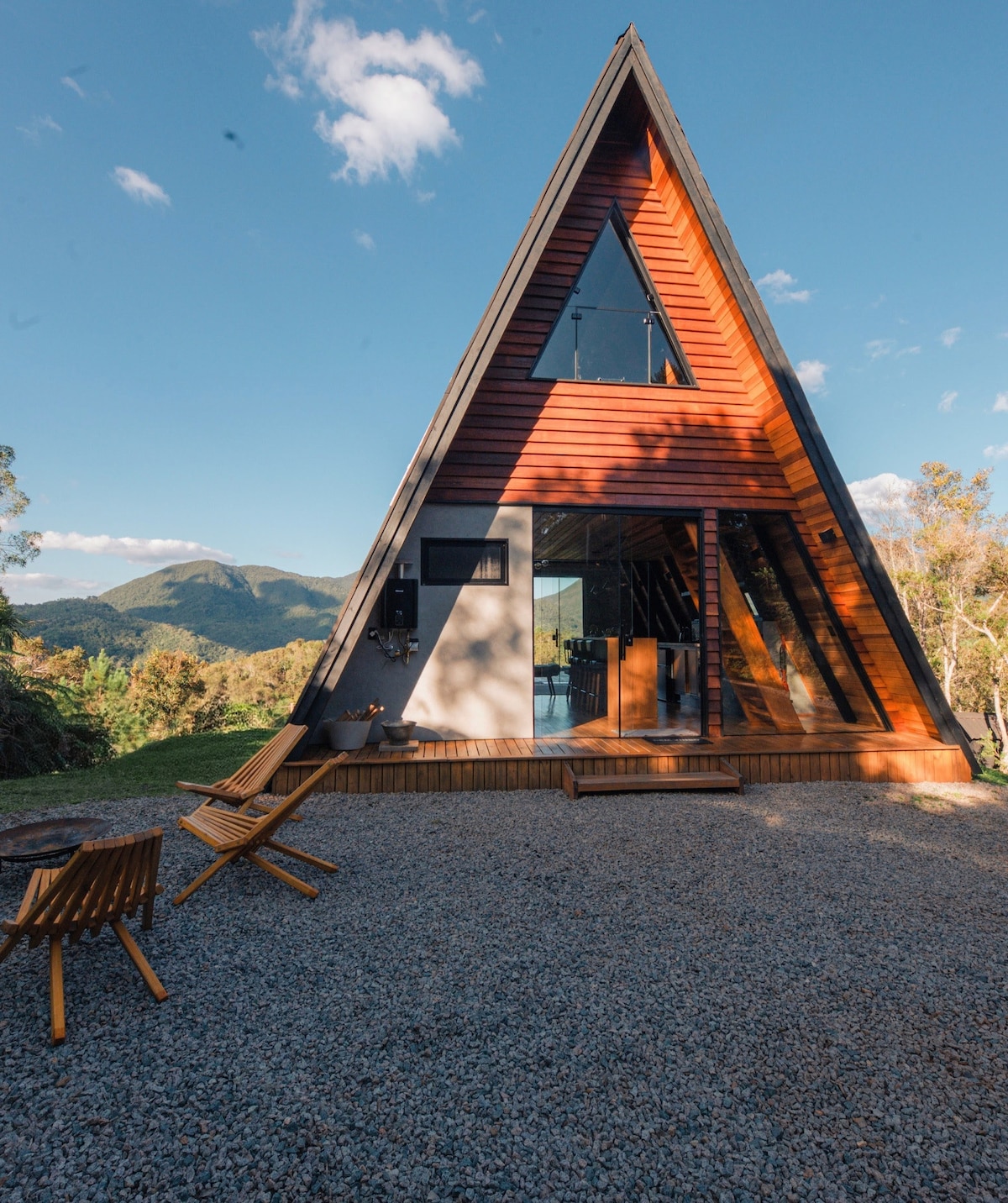 🌄 Vista privilegiada para as montanhas mais altas do sul do Brasil e para a represa do Capivari. ♻️ Cabana A-frame off-grid, com energia 100% sustentável e autonomia total. ⛰️ No topo da montanha, em meio à Mata Atlântica e área de preservação ambiental. 💑 Refúgio exclusivo para casais que buscam natureza, privacidade e tranquilidade. Venha viver a conexão perfeita entre natureza, conforto e inovação! Acompanhe nossa jornada no inst@ @cabanacapivari