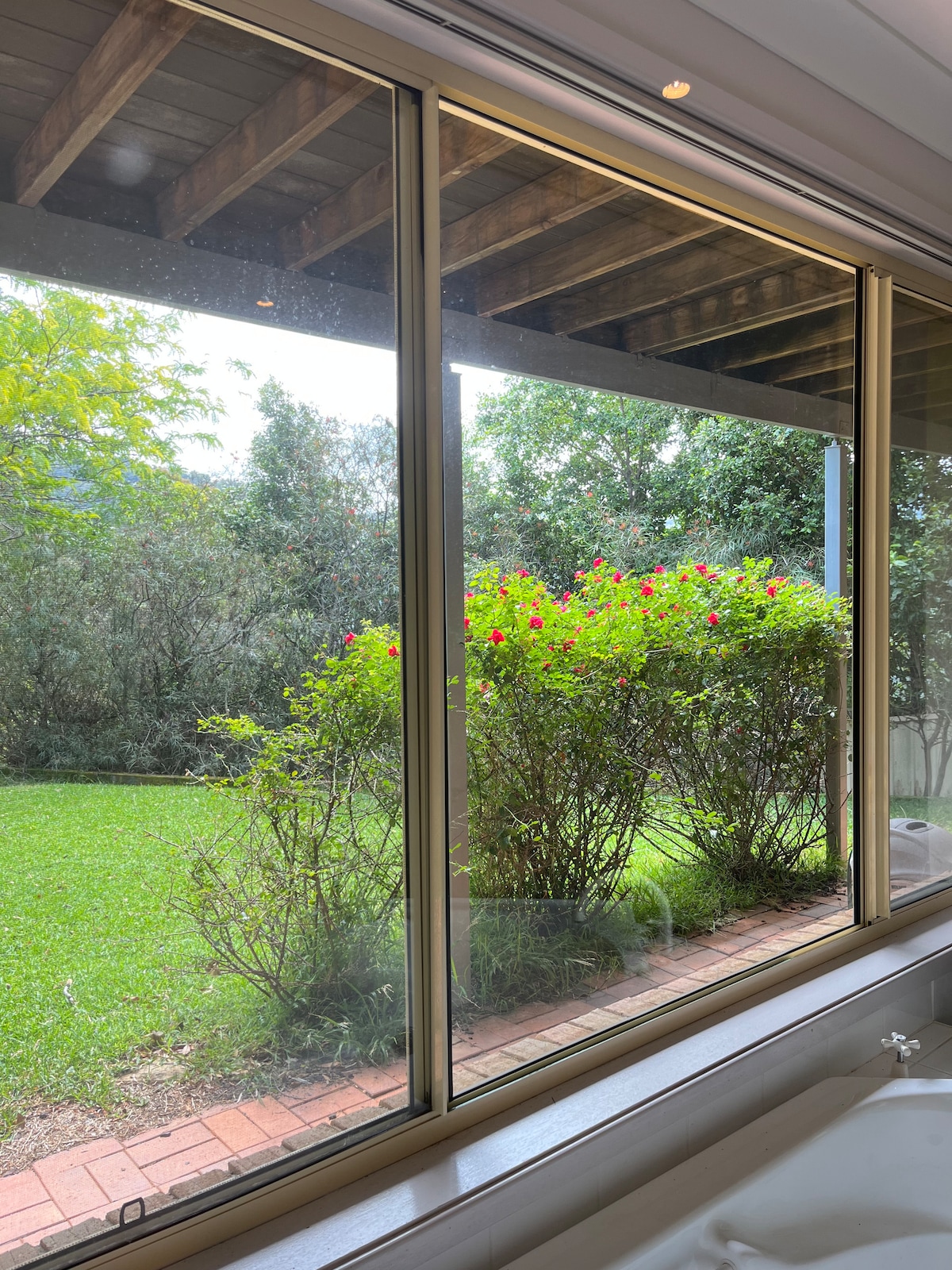 Onlangs gerenoveerd , architectonisch ontworpen appartement tussen bomen met uitzicht over de stad naar de oceaan. Het appartement heeft een open lounge ,eethoek en keuken met een comfortabele zitruimte en een bureau dat uitkomt op een zonnige veranda, toegankelijk via houten schuifdeuren. Een van de 2 appartementen op de begane grond, volledig privé Eigenaren wonen boven Verschillende trappen door de tuin naar de ingang. Geen leuning. Niet aanbevolen voor gasten met mobiliteitsproblemen