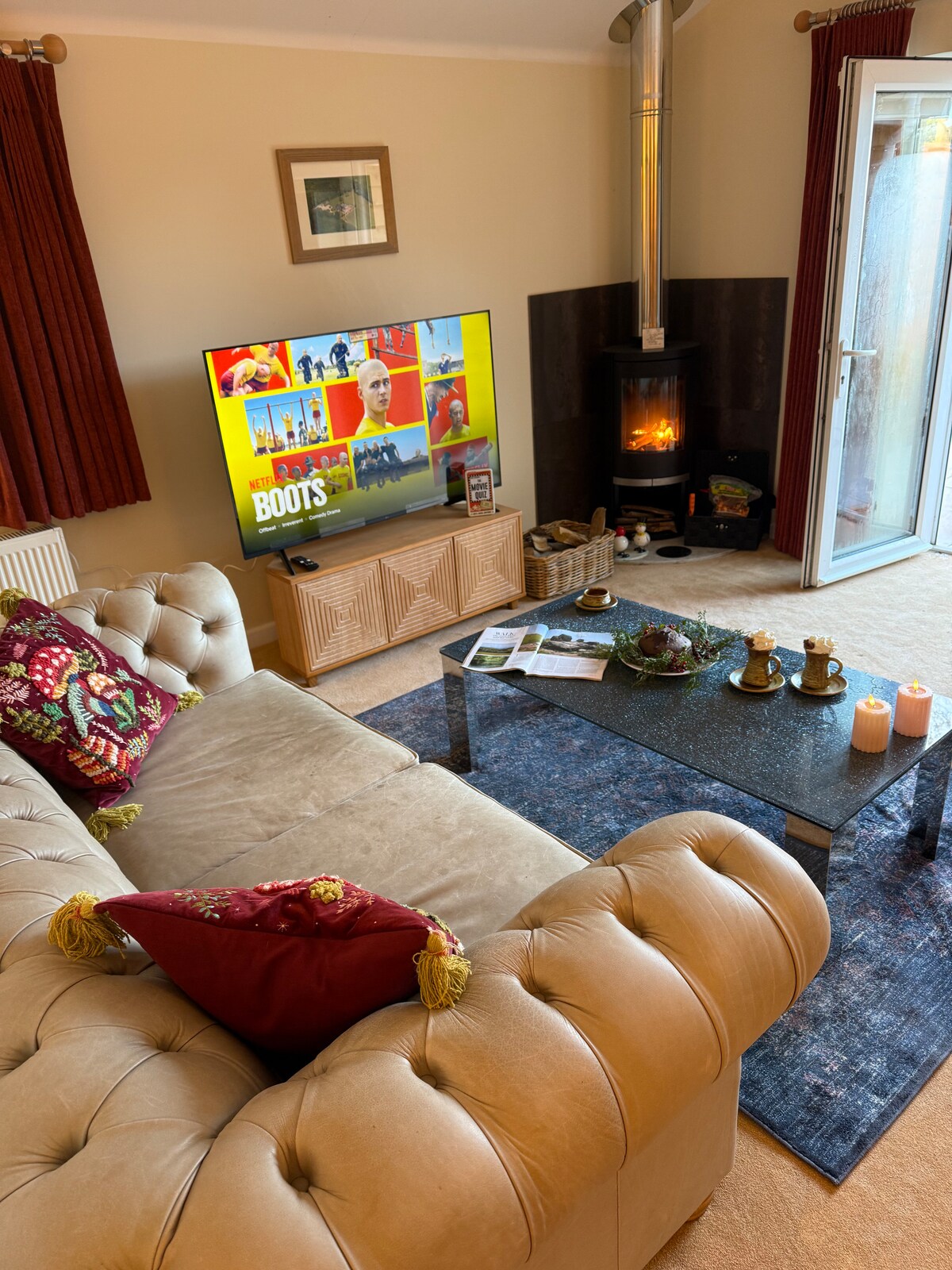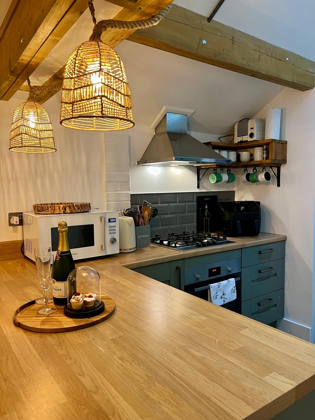 Dit idyllische landhuisje is omgeven door rustige bossen en velden. Ooit een 18e-eeuwse schuur, het is liefdevol gerestaureerd en wat een gastvrije plek is het. Binnen vind je een traditionele open haard, houten balken en veel zichtbare bakstenen. De gezellige zitkamer is de perfecte plek om te zitten op koelere avonden, er is voldoende bankruimte voor zes personen en een tv om films te kijken. Boven vind je 2 slaapkamers en 2 badkamers, en beneden is er een 3e slaapkamer en badkamer.