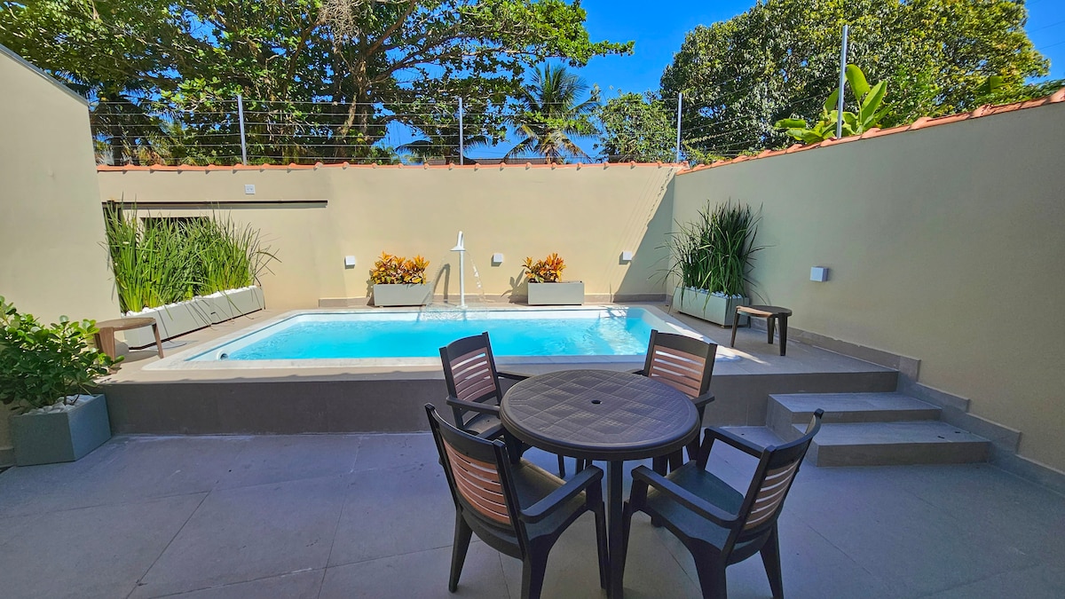 Cond. met totale veiligheid! Zwembad verwarmd 250,00 dag, aparte betaling 🛜Wifi 🎱Sinuca Table 🏖️600 meter van Pernambuco Beach 🏊Zwembad met toegang in de sauna ,douche 🥓Grill met licht,koelkast/ diepvriezer - Ruimte met speelgoed en EVA-KLEED - alle kamers met airco. Plafond Eventilador, tv Tv en eetkamer - Uitgeruste kennel (magnetron,mixer, blender, paella pot, foundue, Japans dinergame, airyfrier) Kleine 🐾huisdieren 100,00 per huisdier ( max. 3)