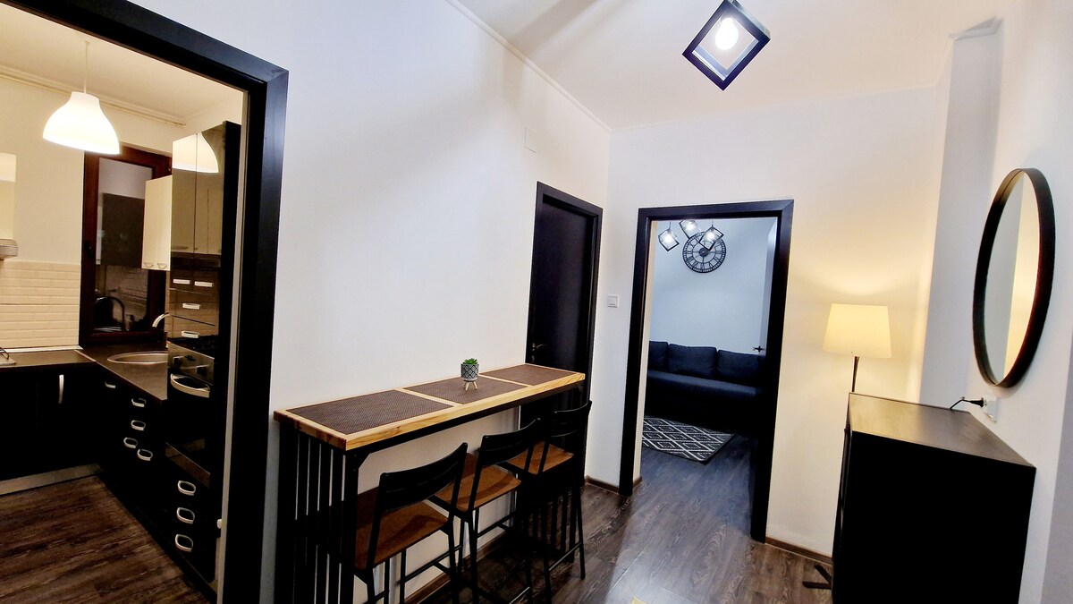 Volledig nieuwe ingerichte plek met nieuwe meubels en apparatuur, gelegen nabij het stadscentrum (rechte loopafstand ongeveer 500 meter), met supermarkten in de buurt . De studio op de 1e verdieping (geen lift) heeft een slaapgedeelte met een uitschuifbare bank voor 2 personen. De studio heeft een volledig uitgeruste keuken, koelkast, koffie espressomachine , magnetron, gas kookplaat, wasmachine, airconditioning, gratis kabel, smart-tv , gratis wifi. Gratis privé- en openbare parkeergelegenheid in de buurt van het gebouw.