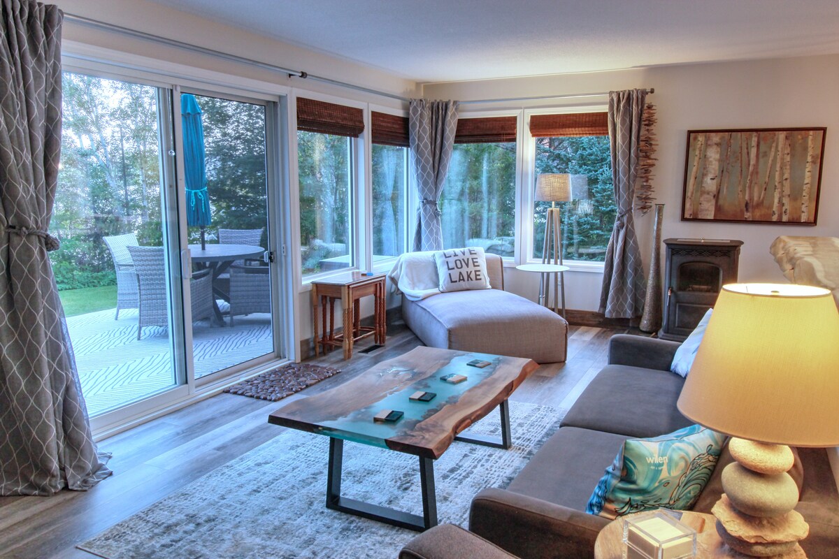 Prijs is inclusief ons deel van de HST :) Op slechts twintig minuten van de stad biedt dit A-Frame toevluchtsoord aan het water prachtig uitzicht op Lake Superior, Sleeping Giant en Caribou Island. Op een steenworp afstand van het zandstrand - perfect voor zomerdagen of ijsvissen tijdens de winter en dicht bij de ski-heuvels van Mount Baldy. Deze grote zelfstandige A-frame met één slaapkamer ligt aan de zijkant van het hoofdhuis en heeft een eigen ingang, keuken, woonkamer en badkamer.