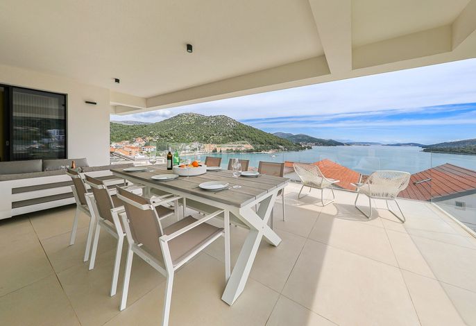 Een huis met een prachtig ingericht interieur en exterieur gelegen in een idyllische omgeving met een prachtig uitzicht in de buurt van de historische stadjes Trogir en Split. Op het huis is een ruim terras met open haard en een zwembad. Een ideale plek voor een gezin of vriendengroep om uit te rusten. Een omheinde tuin stelt je dierbaren in staat om vrij van het spel te genieten.