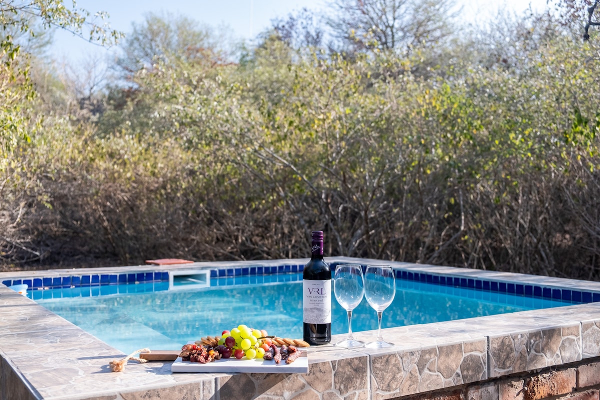 Birdsong is een privéhuis met eigen kookgelegenheid en zonne-energie in een natuurreservaat naast het Kruger National Park. Ontspan in de buitenlounge beneden met verwarmd zwembad terwijl zebra 's, kudu' s en vele anderen langskomen om te bezoeken. Kijk naar de zonsondergang vanaf de hangmat op de bovenste patio. Oefening in de fitnessruimte. En als je gewoon niet weg kunt van je werk, is er boven een grote tafel met een prachtige video-achtergrond! Birdsong ligt op slechts 15 minuten van Kruger 's Crocodile Bridge-poort.
