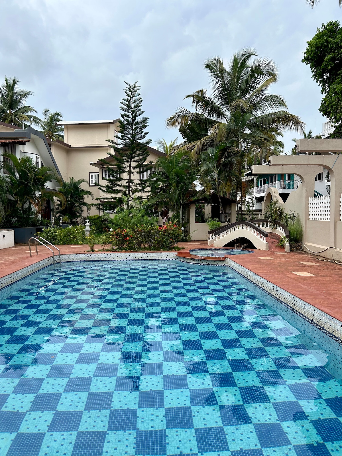 Ontsnap naar ons serene 1 BHK service-appartement in hartje Noord-Goa. Met een 'designplezier' -esthetiek is deze ruimte een perfect toevluchtsoord voor een korte pauze of een langere vakantie. Het ligt op 5 minuten van Baga Beach en omgeven door iconische restaurants, clubs en de Arpora Saturday Night Market. Geniet van volledige toegang tot een zwembad, tuin en 24*7 beveiliging, waardoor je verblijf uitzonderlijk is. Riviera Hermitage is een zeldzaam juweeltje met ongeëvenaarde schoonheid met de beroemde Club Diaz op slechts 500 meter afstand Geen bezoekers toegestaan