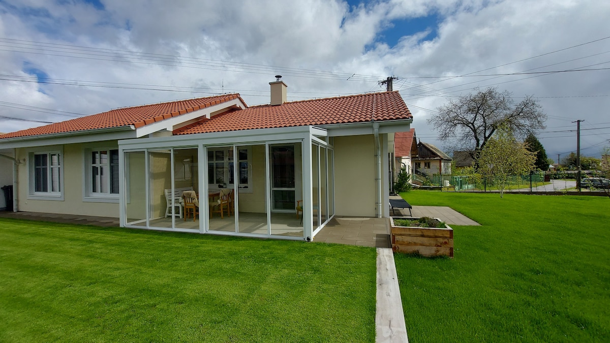 cottage is gelegen in de tuin van een familiehuis met een aparte ingang.Het bestaat uit een grotere kamer van 22m2 met een kitchenette volledig uitgerust.Er is een slaapbank voor 2 personen.Een andere 2 personen kunnen slapen in mezzanine, cottage is geschikt voor een gezin met twee kinderen of voor twee paren. Een deel ervan is een terras met beschutting, barbecue voor de barbecue. Een groot voordeel is de nabijheid van het thermaalbad Laura 20 meter, wat ideaal is voor vakanties met kinderen.