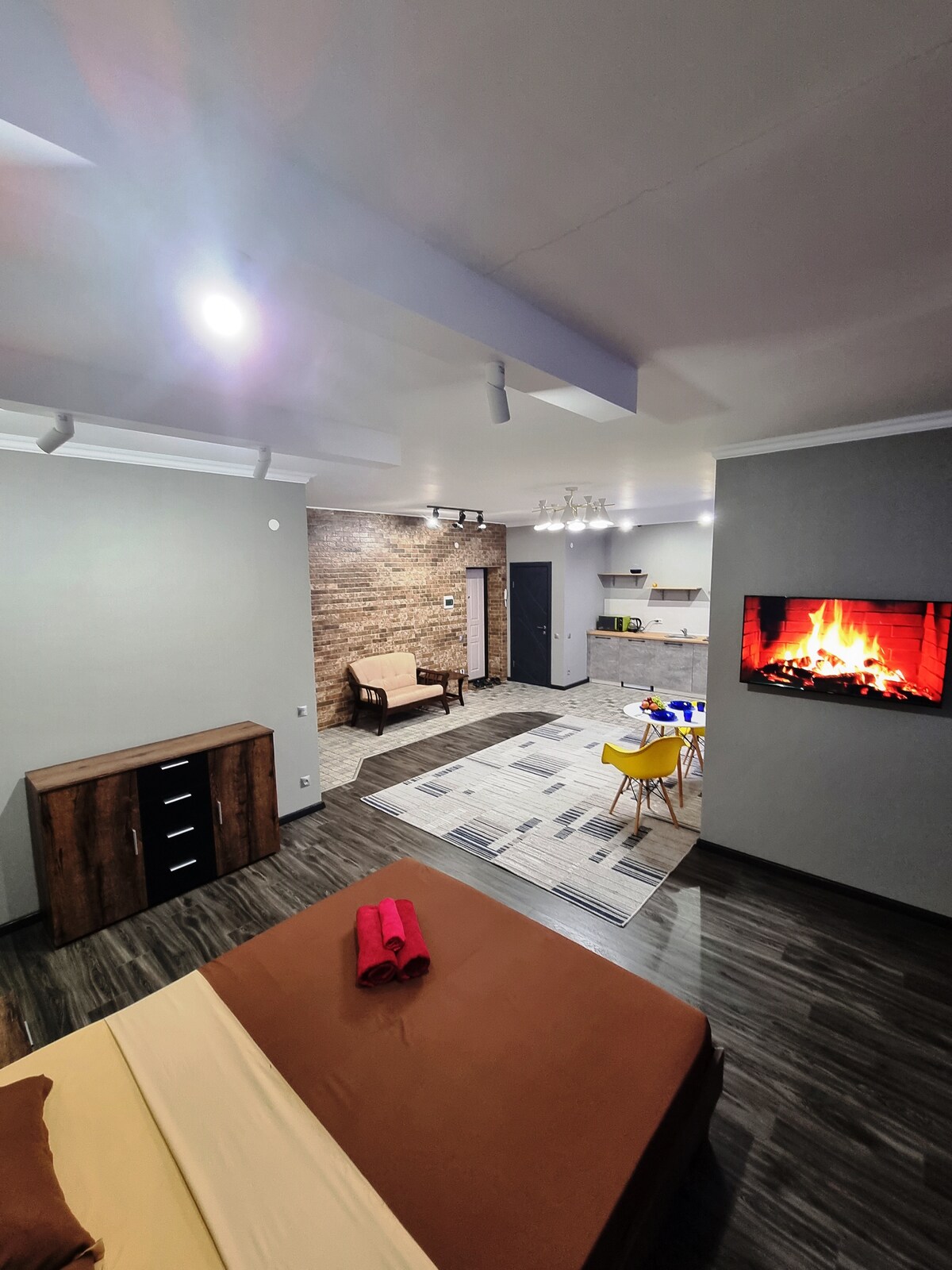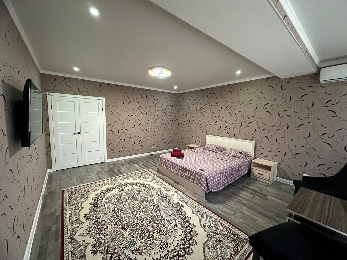 Het appartement ligt in hartje centrum, in hartje Aktobe. In de buurt van het Central Stadium is een plek waar je spannende sportevenementen kunt bezoeken en de echte sfeer van de overwinning kunt ervaren. Voor liefhebbers van sport- en buitenwandelingen is de Aliya Moldagulova Alley geplaveid, je kunt meteen lid worden van de schakers. In het gezellige Taksim of Trevels café kun je genieten van een uitstekende keuken terwijl je ontspant van de zorgen van de dag. Diverse restaurants voldoen aan alle voorkeuren.