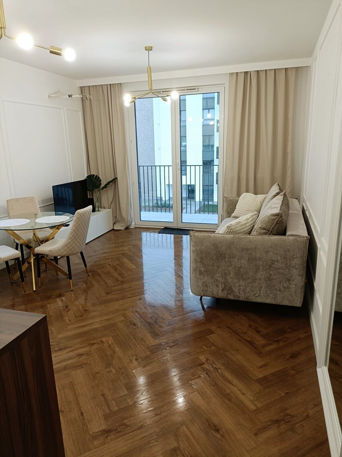 Comfortabel, volledig uitgerust appartement in een nieuw gebouw. Een woonkamer met een open keuken verdeeld in een eet- en zithoek. De slaapkamer heeft een queensize bed en een ruime kast. Er is ook een inloopkast als extra opbergruimte. Er zijn winkels, restaurants en cafés in de omgeving Uitrusting: airconditioning, koffiezetapparaat, waterkoker, strijkijzer, strijkplank, wasmachine Routebeschrijving van Chopin luchthaven 20 min taxi Communicatie van 50 minuten vanaf Modlin Airport 50 min taxi 120 min communicatie