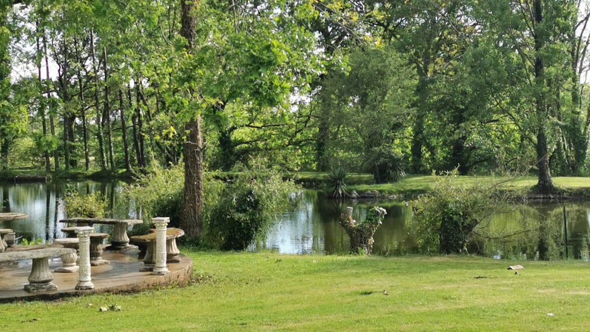 Het is een echt stukje hemel, gelegen op slechts 20 minuten van de zee, van Rochefort en Terre of Vannes. Ver weg van de haast en het massatoerisme is het landgoed van 15 hectare ideaal om 's avonds op het terras naar de sterren te staren, te genieten van een boottocht op de vijver of te vissen, de exotische vogels en eenden van over de hele wereld te bewonderen, bewaard in 2 enorme volières of wandelen door het park en het bos met eeuwenoude eiken.