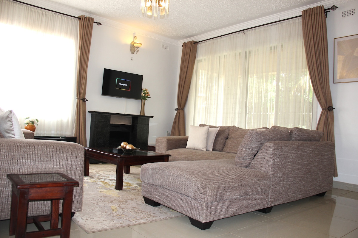 Quiet place, well maintained, uninterrupted water supply (good bore hole) and electricity supply (back up generator). BUTLER SERVICE Laundry House cleaning and dish washing Linen change every other day Clean towels daily DSTV Unlimited internet connection- WIFI Very close to the Westgate shopping mall and USA embassy. Safe neighborhood.