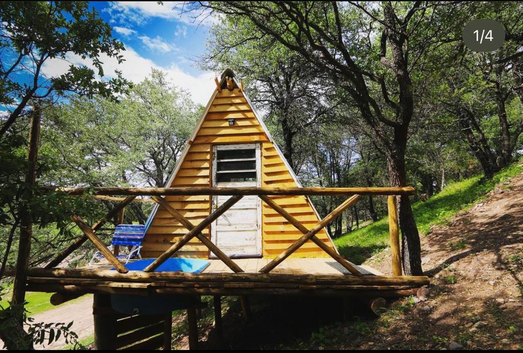 Las cabañas alpinas cuentan con colchón, tapete, buró, espejo, puerta de entrada y puerta de salida al balcón. El balcón cuenta con hamaca y terraza con vista al bosque. Esta cabaña cuenta con una pequeña alberca que tiene un costo extra de $200 pesos por noche.
