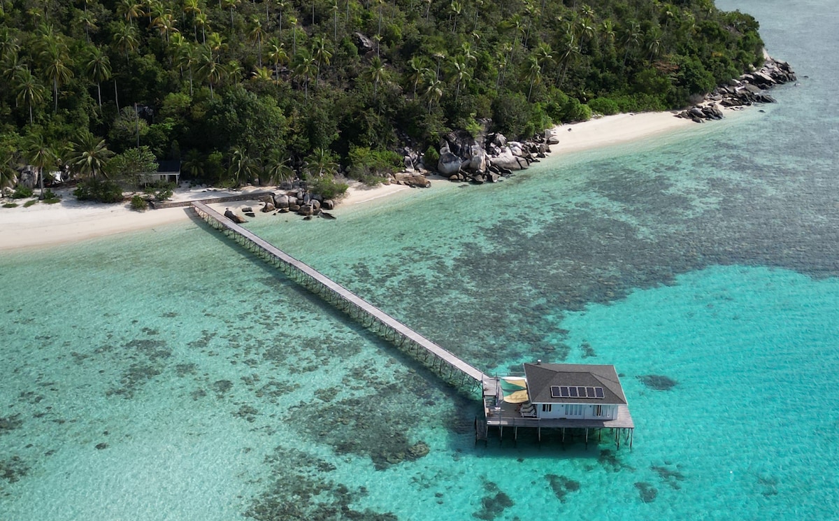 Deze villa boven het water ligt boven de zee op een klein privé-eiland in de Anambas-eilanden en zweeft tussen hemel en water. Golven bewegen onder de vloer, het zeeleven glijdt eronder en de oceaan omringt je in een rustige, Stap van het dek rechtstreeks in helder tropisch water om te zwemmen, snorkelen of peddelen wanneer je maar wilt. Met directe toegang tot de zee en het strand nodigt de villa gasten uit om echt op het water te leven, waar de oceaan niet alleen een uitzicht is, maar de ervaring. Het is een perfect uitje voor jou en je dierbaren