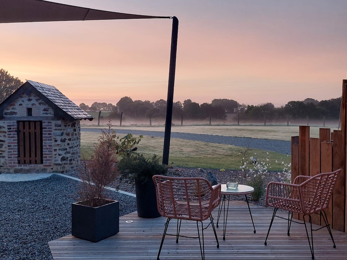 Welkom bij de Moon Dome La Canopée du Mont! 🌙⭐️💫 Grote en mooie koepel, Frans gemaakt, heel leuk ingericht, Houtkachel. 🪵 🔥 Gegarandeerde warmte, zelfs in de winter ❄️ Romantiek op het platteland, rustig, 26 km van Mont Saint-Michel en 45 minuten van Rennes. Opties, tarief voor 2 personen: - sessie van 45 minuten in de sauna: 45 euro - 1 uur Noordse badsessie: € 59 Ontbijt voor 2 : € 29 Aperitiefplank, raclette diner, picknickmand