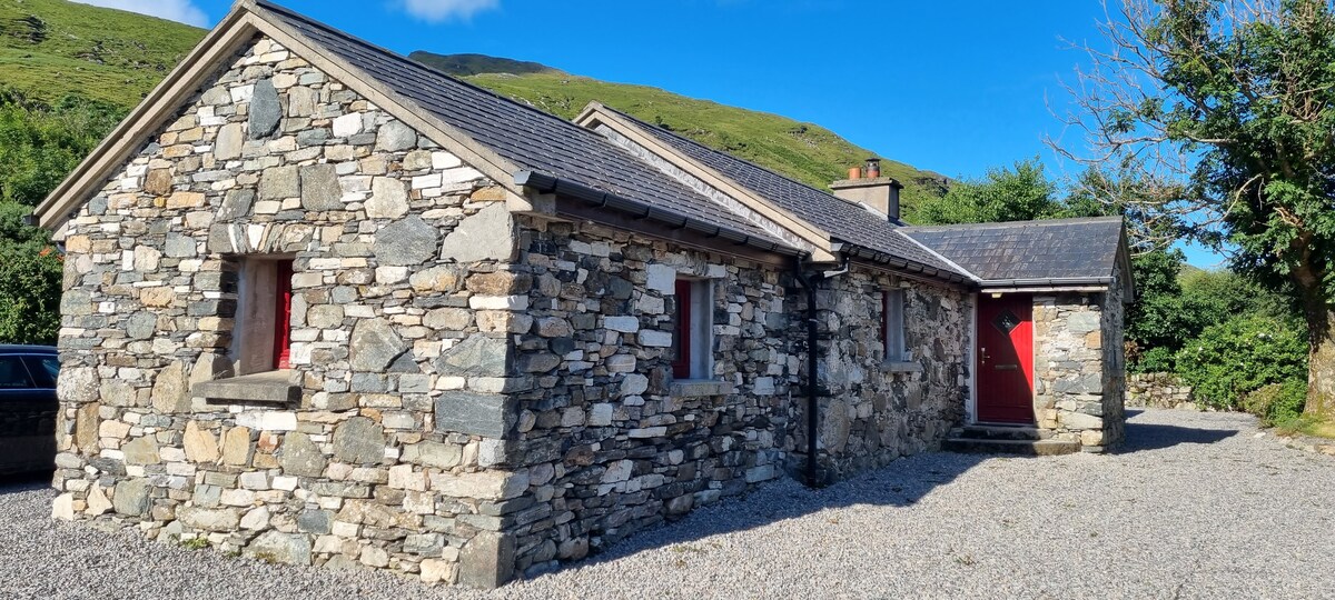 Dit prachtige stenen huisje ligt tussen de heuvels en meren van Connemara en is omgeven door natuurlijke tuinen en wilde, kleurrijke bloemen. Er is eindeloos wandelen en klimmen met Nationaal Park Connemara voor de deur. Het huisje is gelegen langs de Wild Atlantic Way op korte rijafstand van prachtige stranden bij Letterfrack en Renvyle. Kylemore Abbey en Gardens liggen aan de overkant van het meer voor de deur, wat geschikt is om te vissen met bootverhuur ook beschikbaar