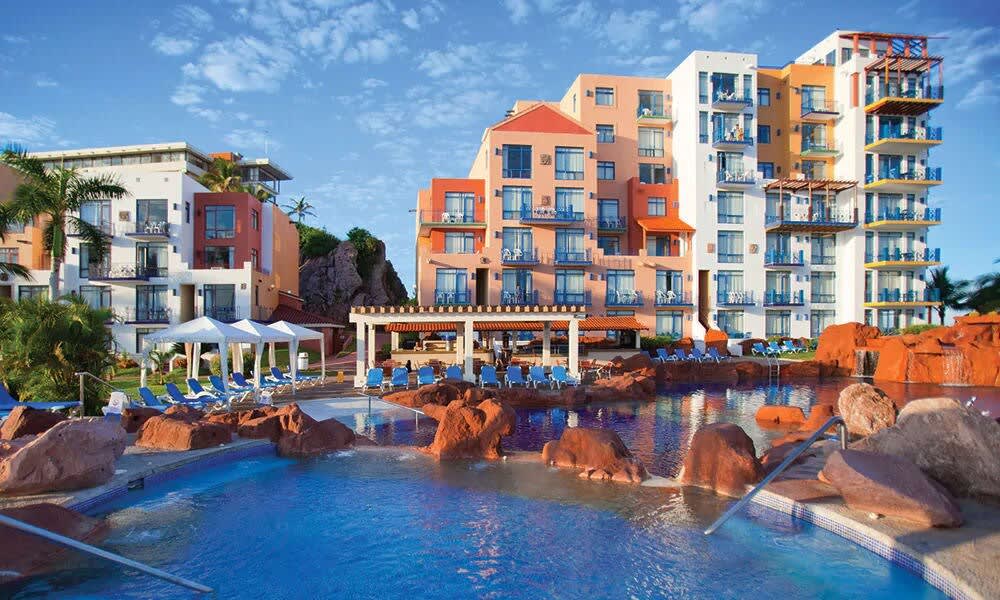Dit resort in mediterrane stijl ligt tussen de dokken van de jachthaven van Mazatlan in Golden Zone en vormt een oase aan het water die ideaal is voor relaxte middagen en zeevarende avonturen. Geniet van wat stralen bij twee buitenzwembaden — een met swim-up bar, de andere met glijbanen en onderwatergrotten. Of neem de watertaxi van het resort naar een afgelegen wit zandstrand in de buurt.