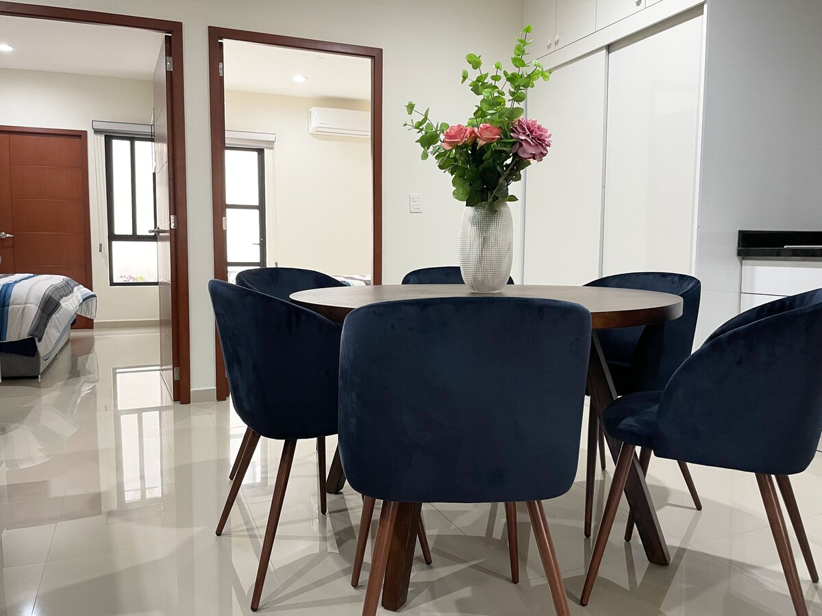 Welkom in ons mooie en gezellige appartement! Gelegen in een buurt dicht bij de hele attractie. Onze ruimte biedt een perfecte combinatie van gemak en gemak. - Zelf inchecken na 15.00 uur en zonder beperking. - Zelf inchecken Een straat van de zeedijk 20 minuten van de luchthaven 5 minuten vanaf Centro Historico Op vijf minuten van het aquarium * Keuken met volledige keuken *Warme douche *Mini-split en habtación *Snelle wifi * Parkeren op straat