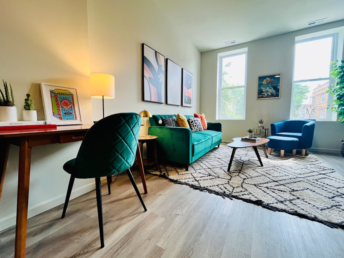 Hallo en welkom aan iedereen die op zoek is naar een comfortabele en gunstige accommodatie in Chicago! Geniet van uw tijd weg van huis in ons volledig gemeubileerde appartement gelegen in de trendy wijk Wicker Park! Bekijk de lijst hieronder van alle prachtige voorzieningen die we bieden aan elke gast die buiten het appartement verblijft. Als je nog vragen of opmerkingen hebt, kun je altijd contact met me opnemen. Ik kijk ernaar uit om je snel te zien en je appartement klaar te hebben! Bedankt! Eén nacht beschikbaar