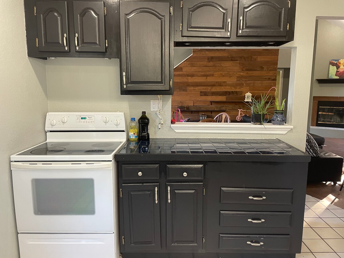 La Puerta Pink Casita nodigt je uit om te komen genieten van de rust en schoonheid van het platteland in een volledig ingericht huis met 2 bedden/2 badkamers. Breng tijd door met herinneringen, het opnieuw verbinden met vrienden, familie of hond(en) bij het haardvuur en s'mores maken. Wifi nodig? We hebben Starlink-wifi voor het controleren van e-mail of Netflix. Geniet van 10 hectare grond terwijl je in de achtertuin zit. De zomerse hitte heeft de vijver niet gedroogd en de bas en meerval zijn bloeiend! Neem visstokken mee en geniet van de tijd bij de vijver.