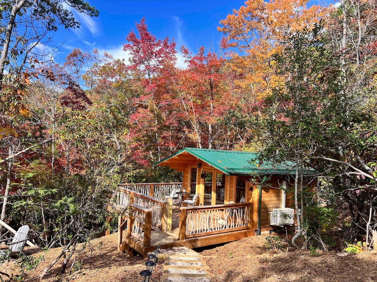 One-bedroom cabin w/ air conditioner, heaters, queen bed, full kitchen, living area, and bathroom with hot shower & indoor dry-flush toilet (does not use water). TV, Wifi, linens, dishes, coffee/tea, breakfast foods, fridge/freezer, microwave, fire pit, picnic table, and more! Just minutes from the Blue Ridge Parkway! Explore our 5 acre property and visit the small pond in back. Please ensure pets are leashed - we have ducks. The hosts also live on the property in a separate house.