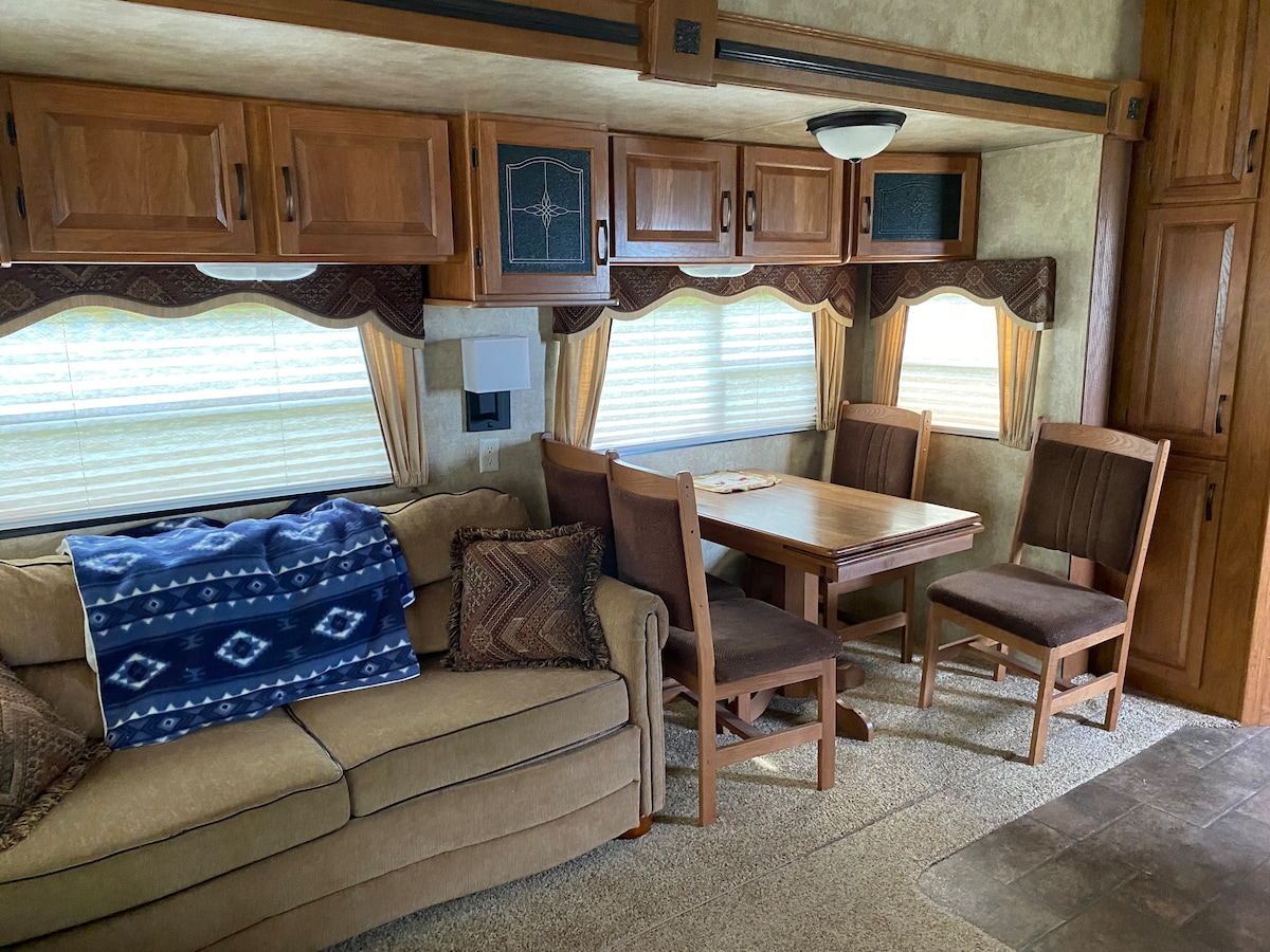 Our space started as my husbands "man cave." A place to display his hunting accomplishments and do all things manly. Yet, as the project progressed it turned into a lovely rustic lodge that we'd like to share with you. Just 5 miles North of Sturgis we provide a space that is minutes away from Bear Butte State park, the beautiful Black Hills and sits on a quiet valley acreage. It would be ideal for anyone visiting the area who enjoys fresh country air and a bit of rustic charm.