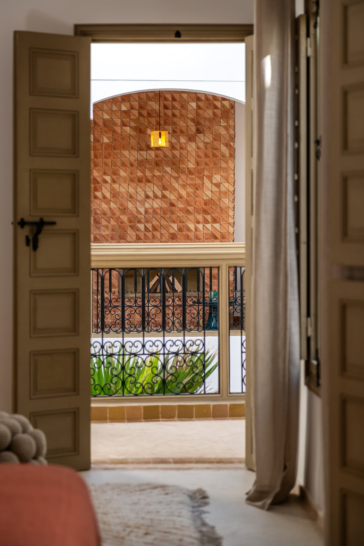 Een typisch Marrakech Riad, met 7 tweepersoonskamers, is een harmonieuze mix van traditionele charme en modern comfort. Het hart is een serene patio binnenplaats versierd met een verfrissend zwembad, dat een rustige oase biedt. Stijg naar het dakterras voor een panoramisch uitzicht op de stad en het Atlasgebergte. De esthetiek van de Riad, met ingewikkelde tegels, sierlijke bogen en weelderig groen, roept het rijke culturele tapijt van Marrakech op en creëert een uitnodigend toevluchtsoord voor de gasten.