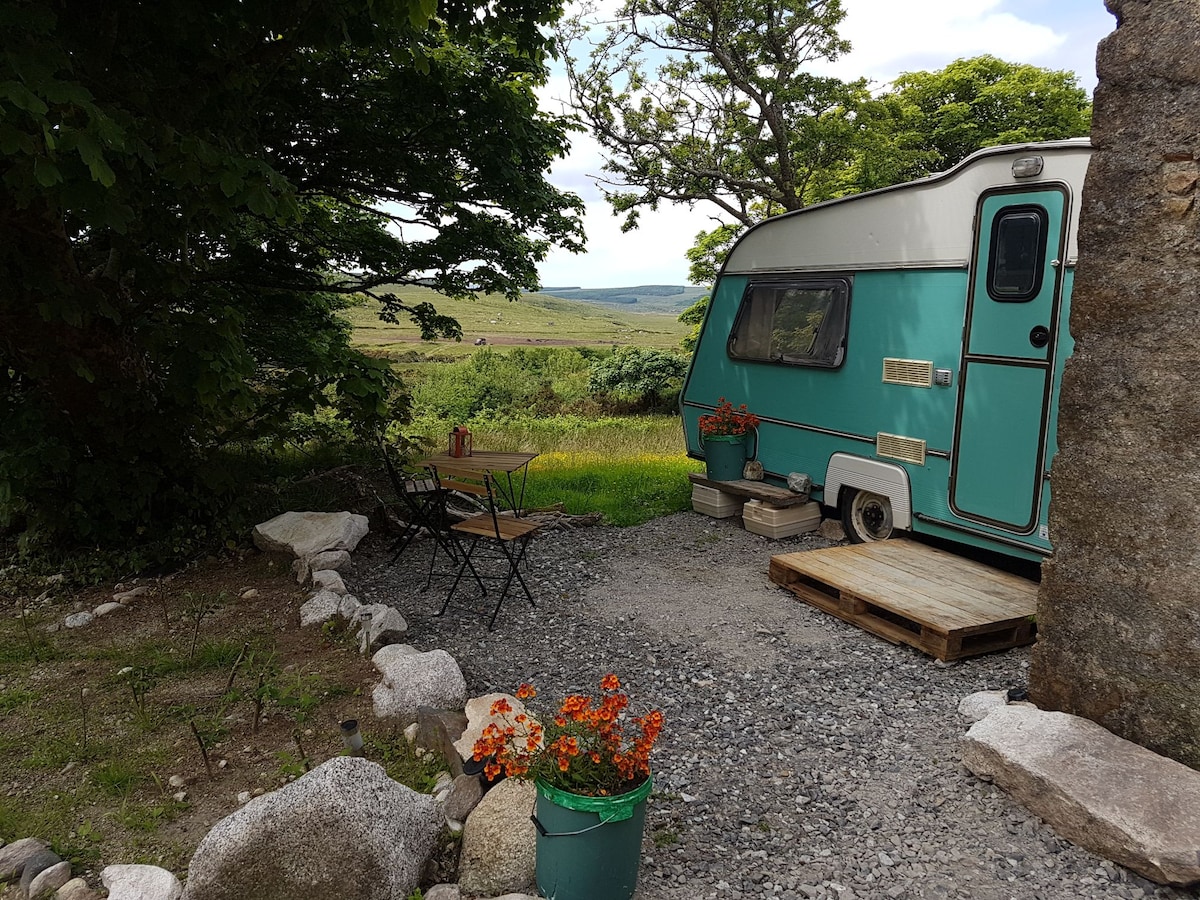 De Teacup Vintage Caravan in de Greenhouse Eco Cabin ligt in 18 hectare afgelegen wild landschap in de heuvels van Donegal. Ons doel is om een eenvoudig, basic leven te leiden in comfortabele gezelligheid met een aantal extra eigenzinnige kenmerken. Dus onze douche bespaart water, het is een pompdouche die je zal wassen, maar niet high powered zal zijn! Onze droge composttoiletten gebruiken geen water om door te spoelen, alleen zaagsel. Maar lees de recensies en je zult zien dat de ervaring uniek is en over het algemeen geliefd is bij al onze gasten