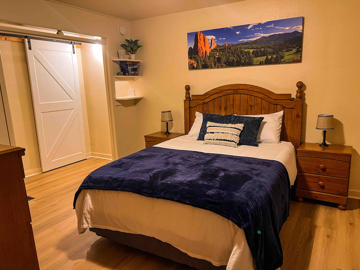 Deze gloednieuwe bouw (68 m²) is modern met extra comfort, waaronder verwarmde badkamervloeren, een slimme badkamerspiegel, inloopkast, gewelfde plafonds en een Rokutv, zodat je je favoriete programma's kunt streamen. Een klein eigen balkon en tuinruimte betekenen dat je kunt genieten van de zon van Colorado. Gemakkelijk toegang tot alles wat Colorado Springs te bieden heeft, omdat deze woning op een klein eindje rijden ligt van ongelooflijke wandelingen en het centrum. Let op: deze woning ligt boven een garage die regelmatig wordt gebruikt