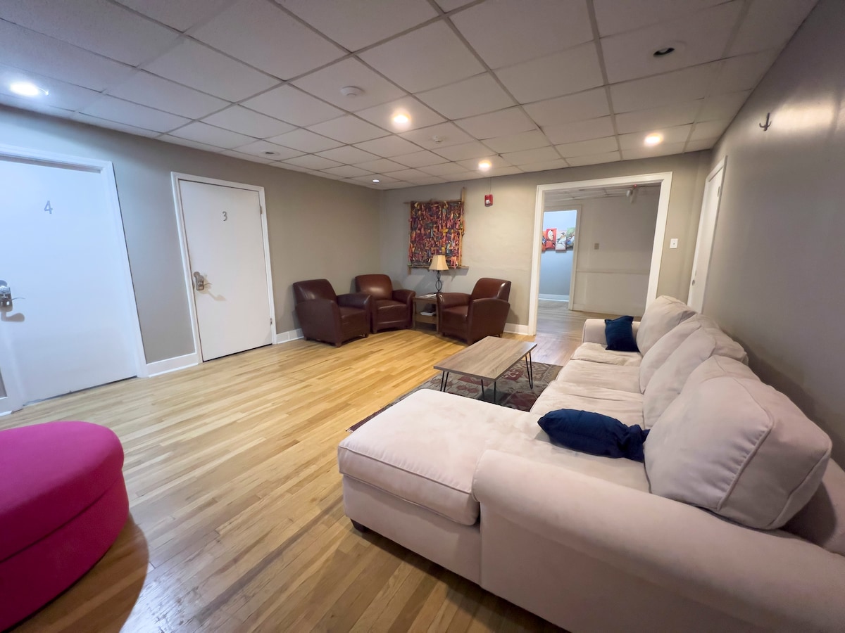 Schilderachtige, betaalbare, comfortabele, veilige, schone accommodaties voor onze gasten en gemeenschappelijke ruimtes om een gevoel van verbondenheid en gemeenschap aan te moedigen. De ruimte beschikt over stapelbedden voor groepen en privékamers voor individuen. We hebben twee lounges, een bibliotheek en een grote, grote keuken met een koelkast, fornuis, oven, magnetron en vaatwasser. Daarnaast zijn er voedselopslagruimtes en voldoende tafels en stoelen om te zitten om te eten of bordspellen te spelen!