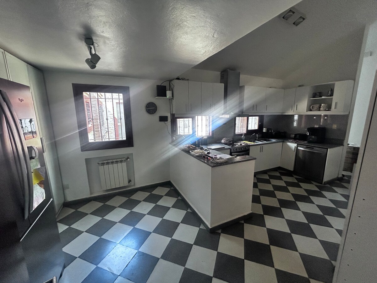 Casa con alma, ideal para familias y amigos. Lugar para 11, ideal 8, dos cuartos matrimoniales. Bienvenido a nuestro refugio en Sierras Chicas. Somos una familia de 7, nos gusta recibir y que sientan como hogar. Te ofrecemos una casa con historia, por las creaciones artesanales del anfitrión. Madera, hierro y cariño se combinan para crear ambientes acogedores. Naturaleza, jardín, pileta, ubicación privilegiada cerca del aeropuerto, de canchas de golf y de atractivos de las Sierras Chicas.