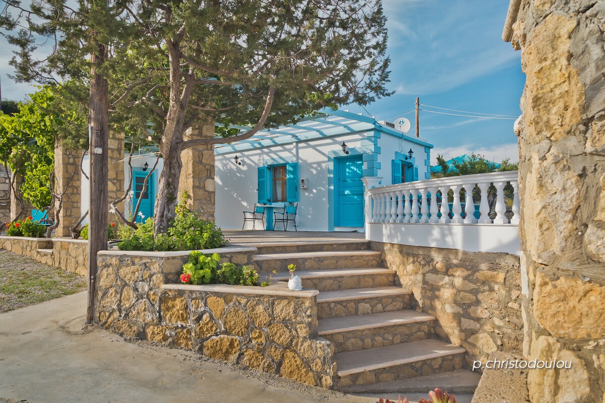 Irene's Cottage Myrtonas is een rustige ontsnapping op een heuvel, perfect voor stellen. Op slechts 15 minuten van het strand van Kyra Panagia, biedt het uitzicht op zee, een grote eigen patio met barbecue, volledige keuken, gezellige eetkamer / woonruimte en een traditioneel Karpathiko loftbed met opslag. Met airconditioning, wifi en wasmachine combineert het comfort, charme en authentieke Karpathiaanse stijl voor een romantisch en ontspannend uitje.
