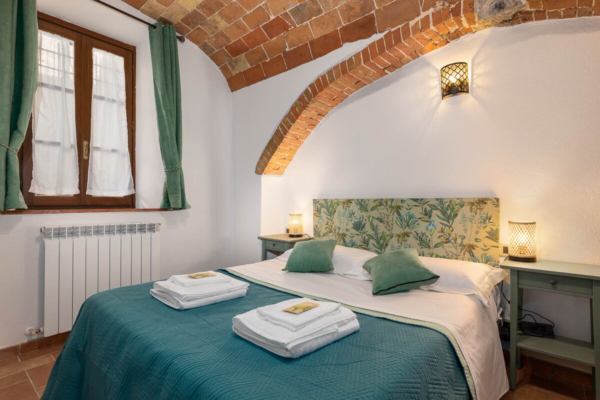 Dit mooie appartement maakt deel uit van onze oude boerderij uit de XVI eeuw en bestaat uit: 1 slaapkamer (tweepersoonsbedden of twee eenpersoonsbedden), 1 badkamer, 1 grote woonkamer met keuken en een buitenwoonkamer die alleen voor jou is gereserveerd. Geniet van het zwembad en het prachtige uitzicht op het Sienese platteland. Profiteer van al onze services: ontbijt, typisch diner, kookles, picknicken en meer ... Siena ligt op slechts 15 minuten rijden!