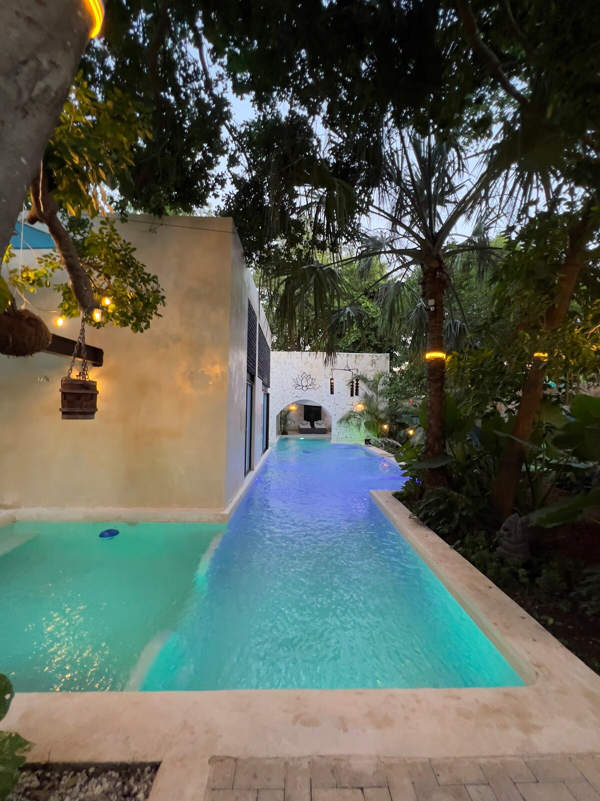 Maravillosa casa con arquitectura colonial yucateca, rescate de muros de mampostería, techos doble altura, arte mexicano en luz negra, sauna, jacuzzi, baño amplio, aire acondicionado, Wifi 200mbps ideal para trabajar, cocina al aire libre, alberca con canal de nado y un jardín hermoso con andadores. Arboles de más de 50 años que por la noche te cautivarán con la iluminación de todo el exterior. Sin duda tenemos un tesoro, y queremos compartirlo! Bienvenido!