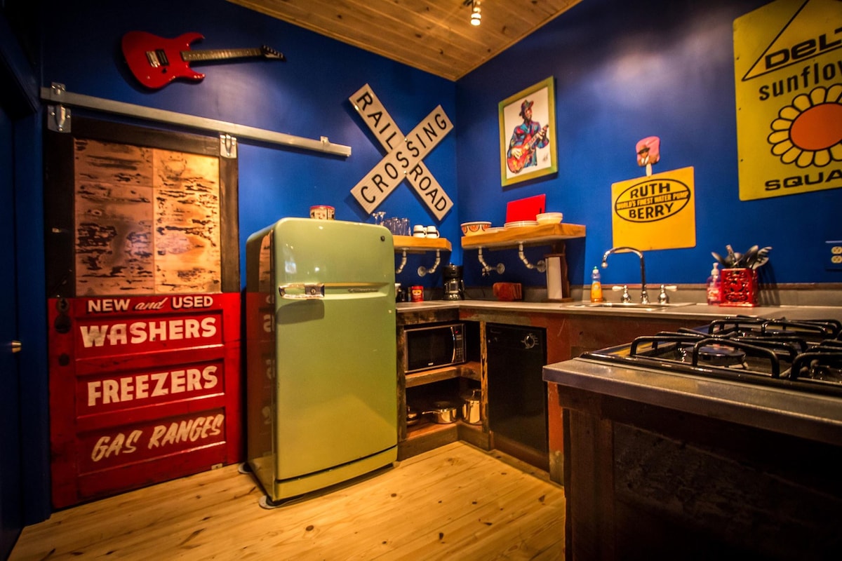 Welkom bij The Gallery! Dit huisje met ƩƩn slaapkamer ligt achter het hoofdhuis. Het is onlangs gerenoveerd, maar is ingericht met vintage meubels voor persoonlijkheid. Het huisje is uitgerust met een complete keuken, slaapkamer, badkamer, wasmachine en droger en Roku TV. Je verblijf zal uniek zijn, omdat de inrichting is geselecteerd uit het hol van mijn verzamelaar, en het beste deel is - het is allemaal te koop! De Galerie is een live-in-showroom voor verzamelobjecten, dus in tegenstelling tot het gezegde - je KUNT het meenemen!