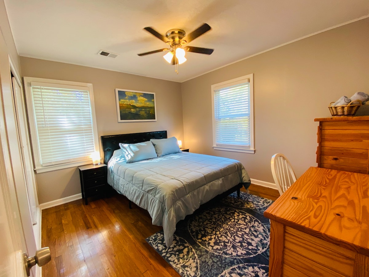Het Hadley huisje is een geweldige plek om het gezin mee te nemen voor een leuk uitstapje of perfect voor je werkbehoeften. Dit chique en moderne huisje ligt op 3 minuten van de I-35 en gunstig gelegen om je snel overal in de KC-metro te krijgen. Dit is een rustige buurt met brede trottoirs op loopafstand van restaurants of winkels. Het huisje heeft een gerenoveerd interieur in 2022, een enorme omheinde achtertuin en een lange oprit voor voldoende parkeergelegenheid.