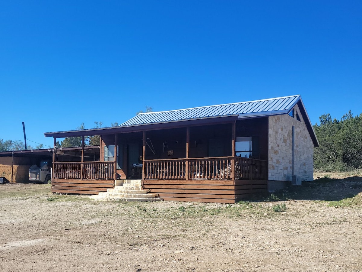 Relax with the whole family at this peaceful place to stay. Enjoy the outdoors with excellent wildlife viewing opportunities. Take one of our wildlife & birding tours or hike through the hills in search of Permian Basin fossils. Our cabin in the woods is an adventure filled stress free zone for you and your family or friends. We offer a 2 bedroom 2 bath cabin with a large front porch that has excellent Hill Country views.