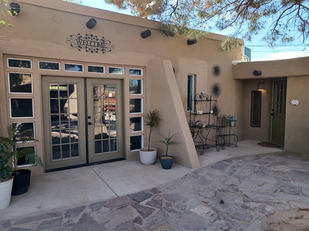 Josefina 's Queen Suite ligt vlak bij het Plaza in Historic Old Mesilla. Achter de dikke adobe muren vind je dit rustige toevluchtsoord. Charmed door de sfeer van ons historische zuidwestelijke ontwerp en de Garden Greenhouse, biedt onze luxe Queen Suite een gezellige stap terug in de tijd, weven samen ouderwetse charme en moderne gemakken zoals WIFI, minikoelkast, smart-tv, airco, zachte badjassen en meer. Als de Queen-suite al geboekt is, kun je onze King Suite bekijken!
