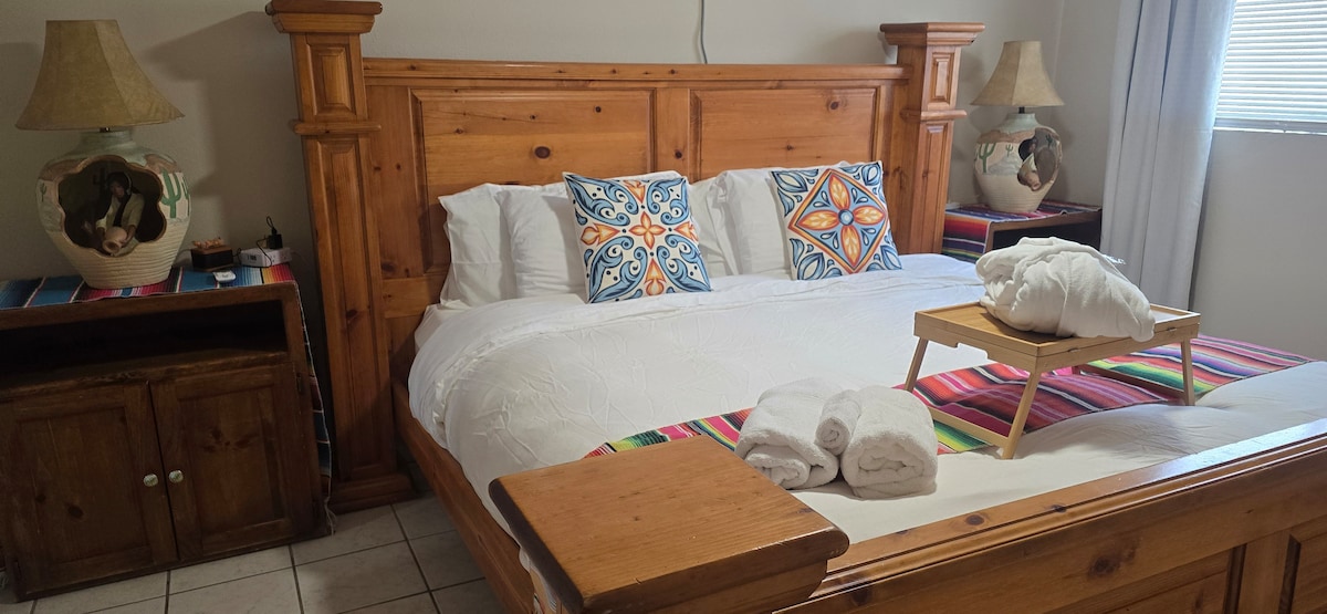 Deze schattige casita ligt op slechts 1,5 km van Historic Mesilla en op vijf minuten van de snelweg. De casita met één slaapkamer en één badkamer is perfect voor zowel bezoekers als reizigers. Ingericht met een queensize bed, tafel en stoelen en een uitgeruste kitchenette met magnetron/broodroosteroven/Keurig /dubbele kookplaat/ wastafel en minikoelkast. Inclusief wifi , smart-tv (geen kabel), mini-split AC/ verwarming en een eigen patio en gasgrill.