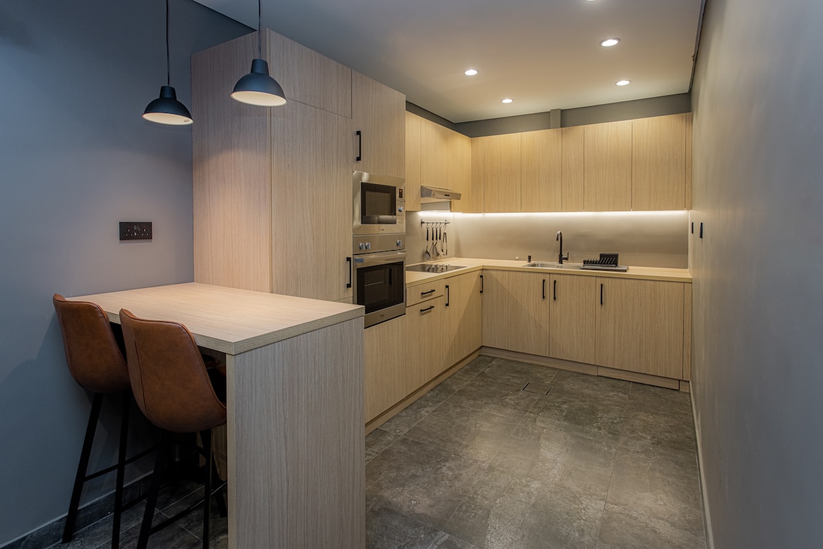 Verblijf in het hart van de stad đïž in dit stijlvolle appartement met twee slaapkamers đ met een prachtig uitzicht op de skyline đ Gelegen op een steenworp afstand van cafĂ©s, winkels en winkelcentra đŹ en het nachtleven is deze ruimte perfect voor zowel werk als ontspanning, schoon, stil en doordacht ontworpen is afgestemd op reizigers die een rustige ruimte nodig hebben om te werken en te rusten en verduisterende gordijnen, je vindt de balans tussen productiviteit en comfort precies goed. Kenmerken zijn een volledig uitgeruste keuken, snelle wifi en een 24/uur