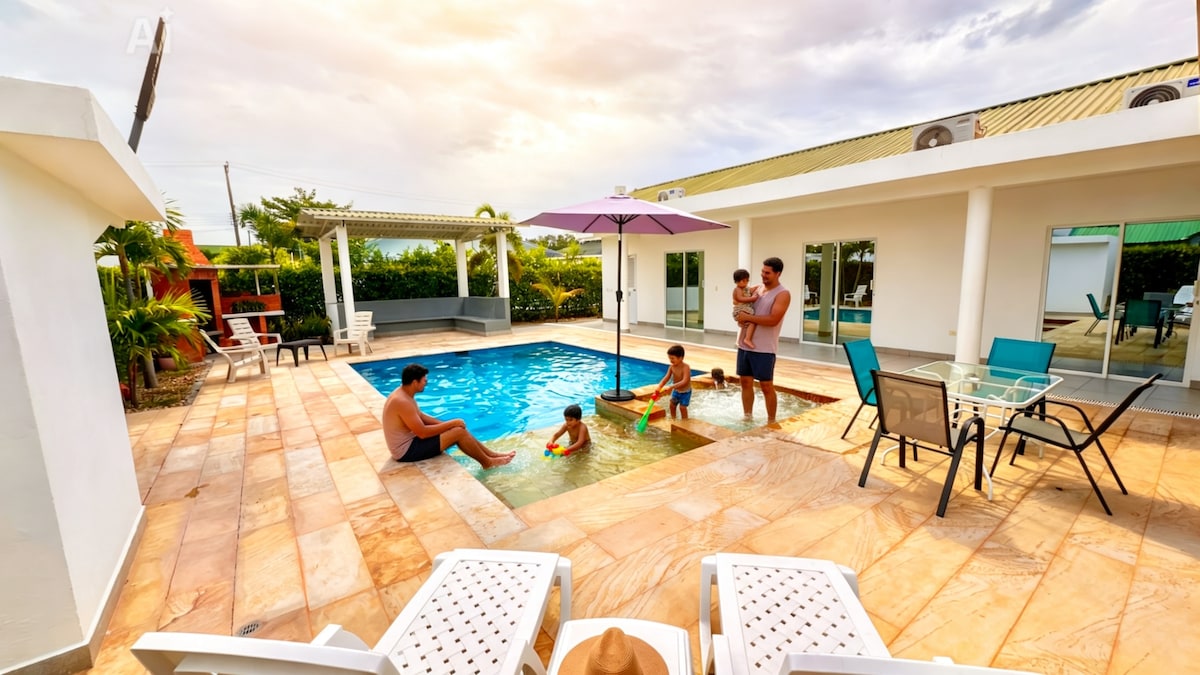 Neem het hele gezin mee naar dit fantastische landgoed, dat een zwembad, jacuzzi en bbq heeft. Het landgoed heeft 4 slaapkamers, 4 badkamers, 3 terrassen, 2 kamers en een complete keuken, en een complete keuken, met koelkast, oven, oven, airfryer, blender, groentemolen, sandwichmaker, enz. In de buurt van de boerderij zijn er winkels, verkoop van eten en fastfood, automatische geldautomaten en Bancolombia bank. De accommodatie is aangepast voor personen met gereduceerde mobiliteit.