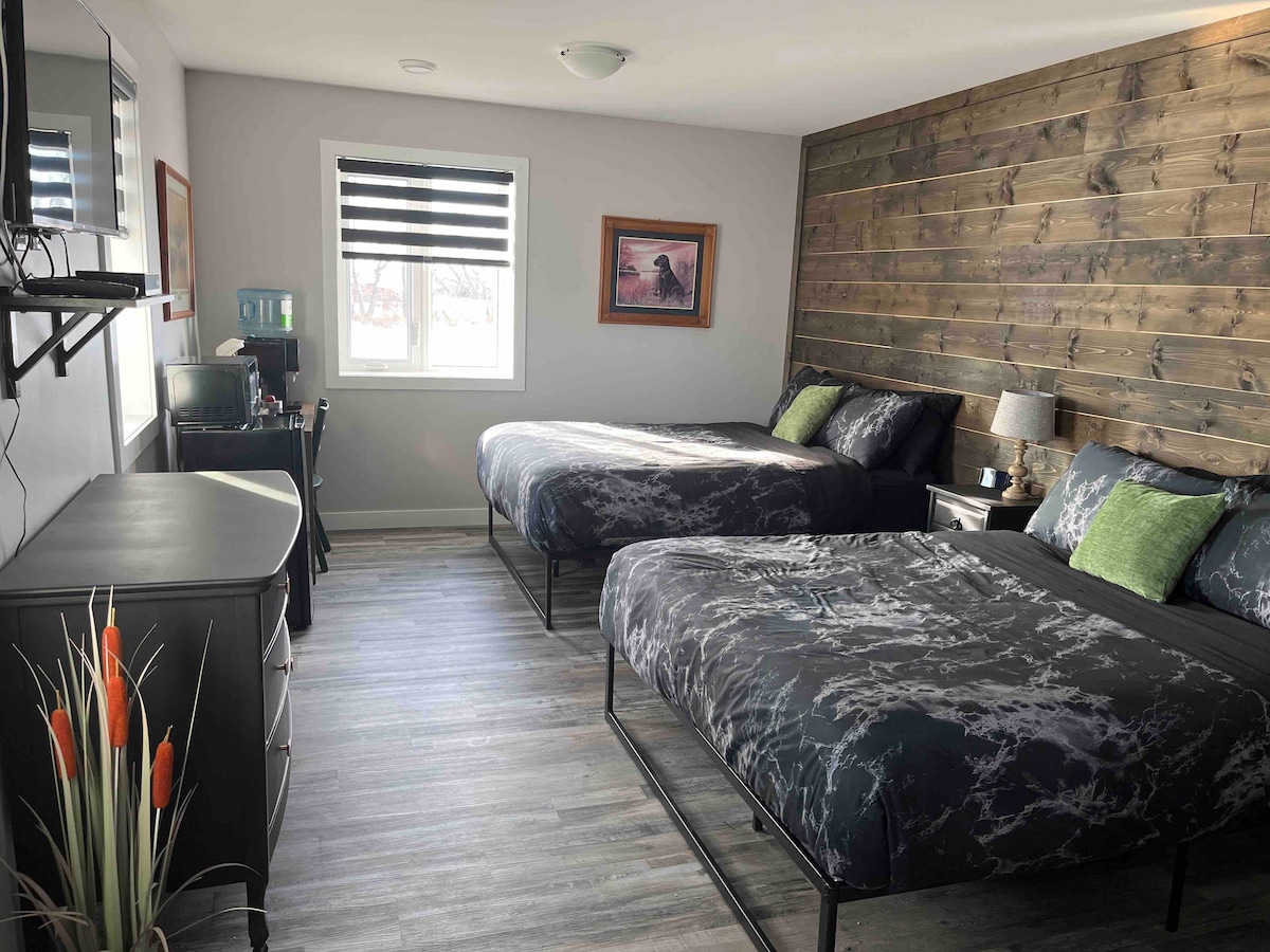Geniet van je verblijf in de speeltuin van vier seizoenen in onze charmante, gezellige, comfortabele en handige (de 4 C 's-ons! ;P) bungalow met 2 slaapkamers. Met een kingsize bed en de optie voor twee eenpersoonsbedden of een gedeelde koning plus een full-size en twee slaapbanken is er ruimte voor het hele gezin. Je bent centraal gelegen ten opzichte van lokale winkels en diensten en op gelijke afstand van de Turtle Mountains, Lake Metigoshe, J. Clark Salyer Refuge en kilometers sneeuwscooter, ATV en wandelpaden.