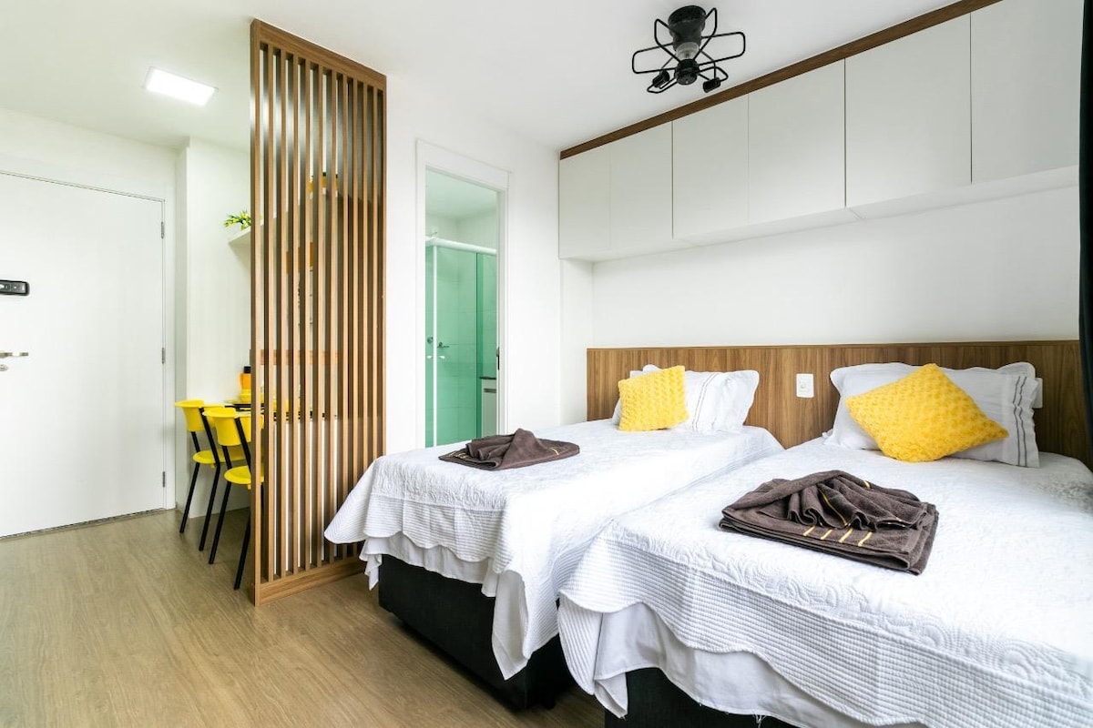 Studio met moderne inrichting gepland voor een kort- en langdurig verblijf. Geschikt voor maximaal twee personen. Gelegen op 200 meter van station Brás. Volledige handel. Gemakkelijke toegang voor diegenen die willen gaan winkelen (Rua do Gasômetro en Largo da Concórdia), toeristische plekken bezoeken zoals São Paulo Municipal Market, Solomon Temple en historisch centrum. Het appartement is klaar om u te verwelkomen met alle comfort, veiligheid en gemak structuur. Maak jouw dromen en wensen uitkomen.