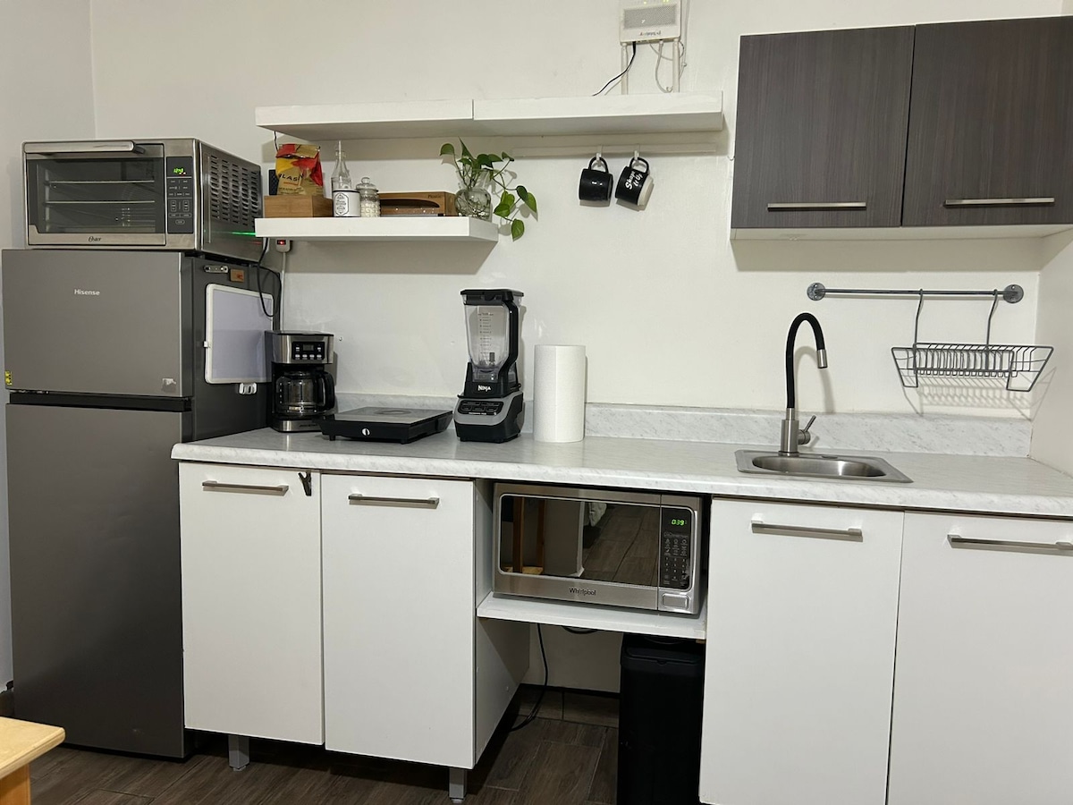 Virtuele tour beschikbaar door de code in het fotogedeelte te scannen - Eigen parkeerplaats - Deuren met beveiligingssleutel - Complete keuken en bar, koelkast, fornuis, fornuis, koffiezetapparaat, magnetron, magnetron, complete servies - 1 slaapkamer met kledingkast, bureau, queensize bed en dekens - 1 complete badkamer, shampoo en zeep, handdoeken - 1 slaapbank en Smart-tv, Netflix. - 1 blok van Independence Avenue, 5 minuten van Llujo en 10 minuten van Justo Sierra Avenue - Markten, restaurants, brouwerijen