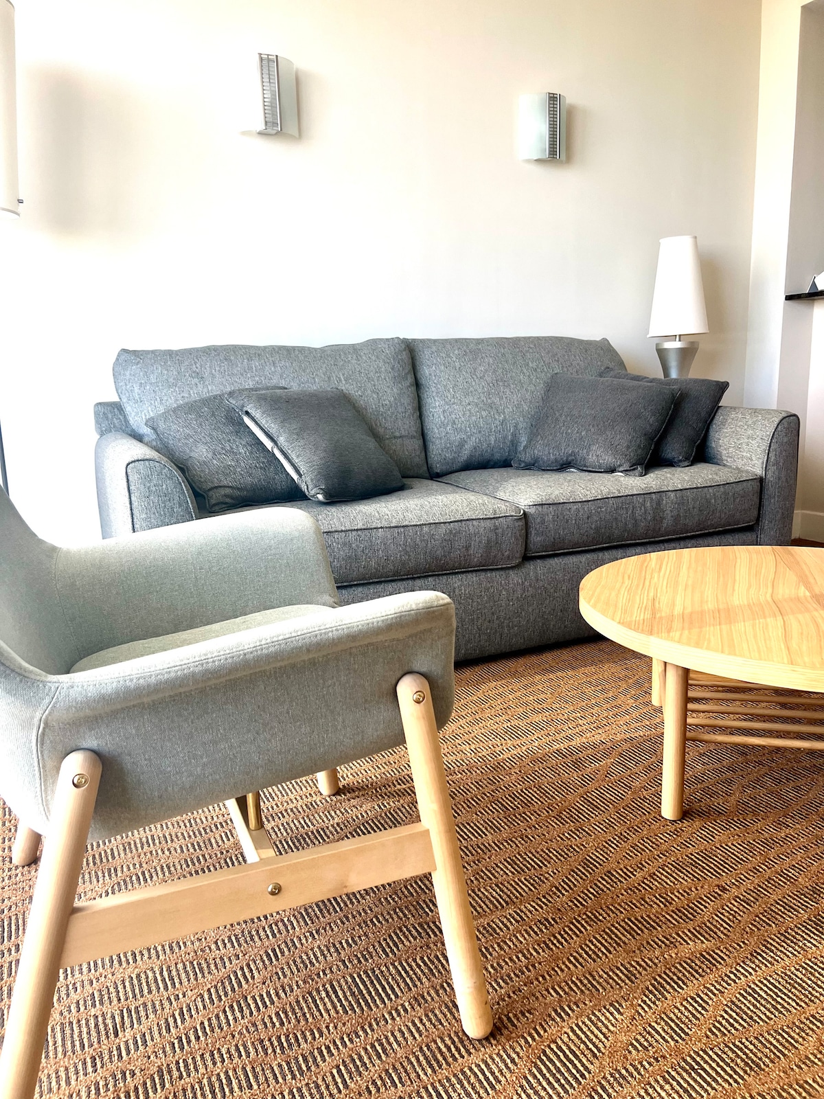 Dicht bij de luchthaven met uitzicht op het water en attracties